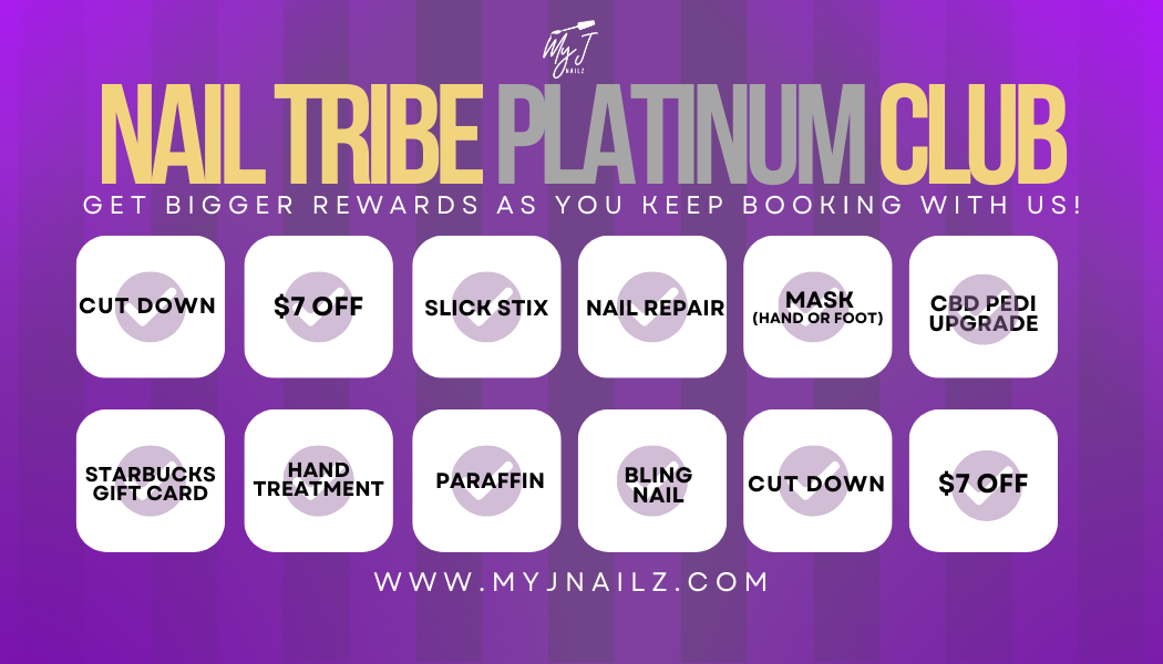 $50 ($160 value) As a Platinum Club member, you'll be treated to even bigger rewards. Enjoy $7 off a service, free cut down, Slick Stix, nail repair, and masks (for both hand and foot). Want more? We're throwing in a Starbucks gift card, a CBD pedi upgrade, a hand treatment, paraffin, and bling to sweeten the deal!